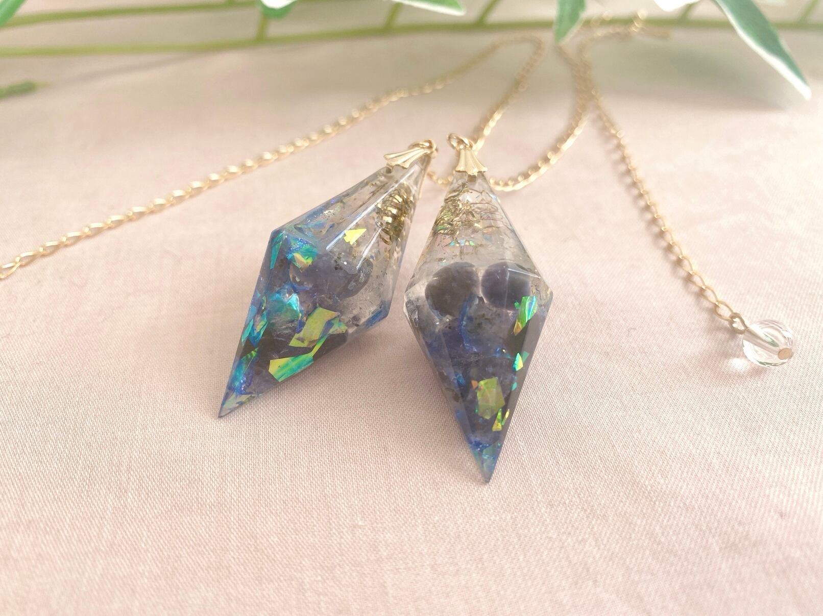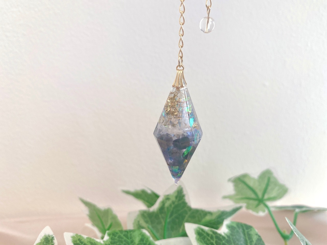 素材 : レジン液・銅線を巻いたポイント水晶・金属片